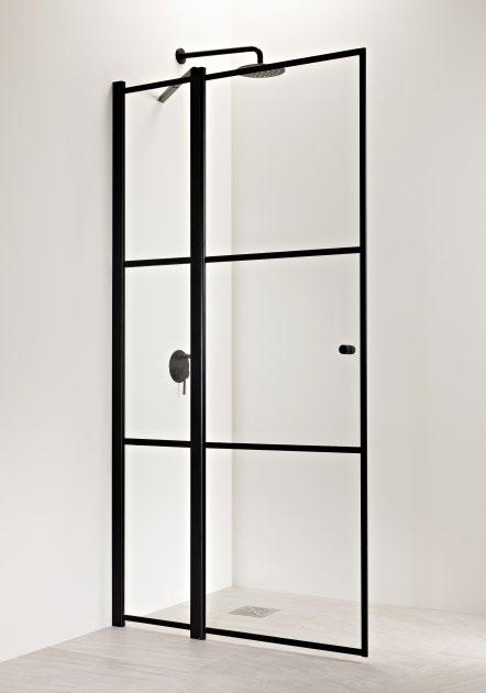 PURO-suihkukalusteiden musta profiiliväri luo kontrastia ja terästää tilan.