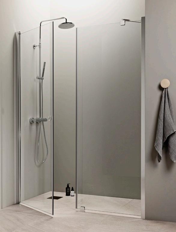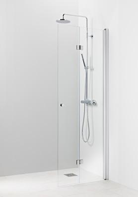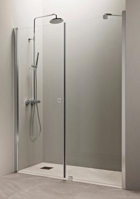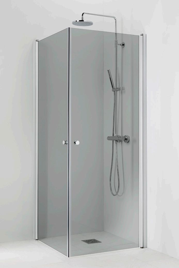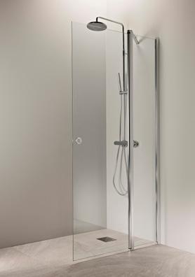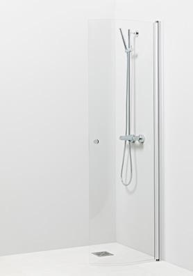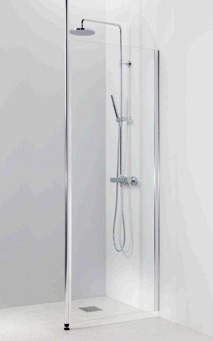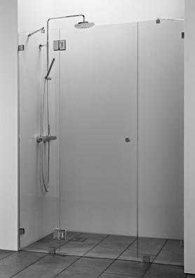 PURO 6 kiinteä suihkuseinä alk. 285 €. Kuvassa (A900) linjalasilla ja kiiltävällä profiililla 615 €.