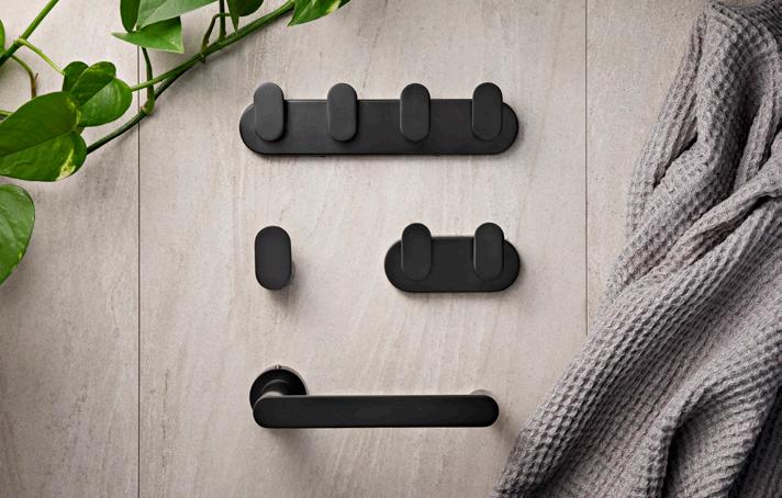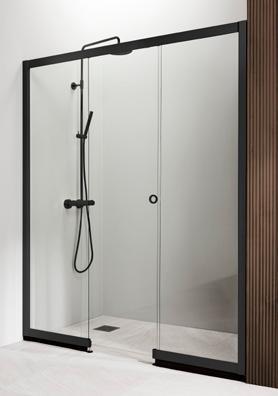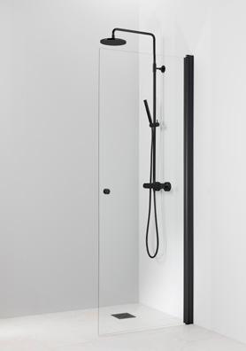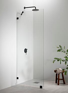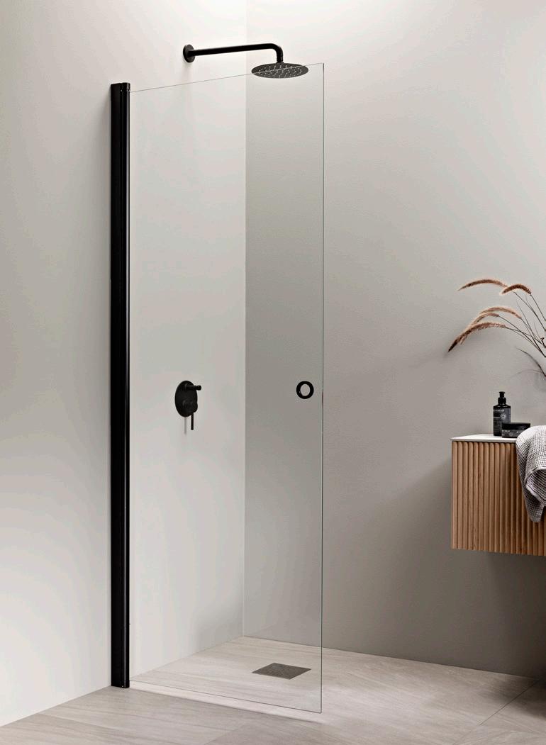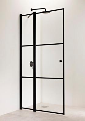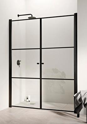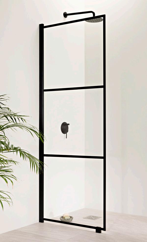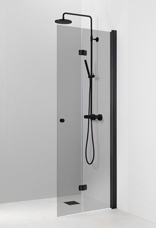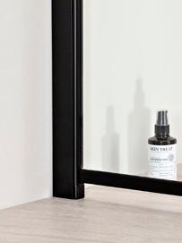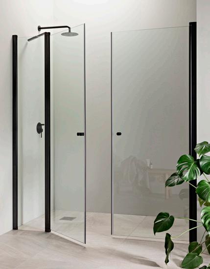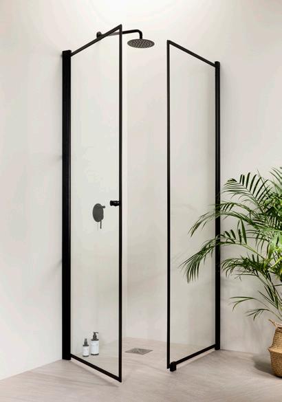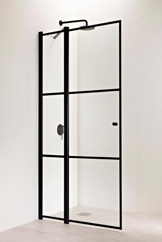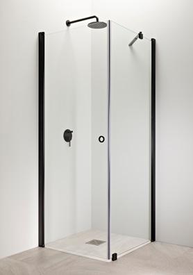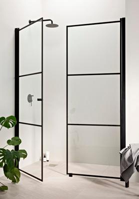 PURO-suihkukalusteiden musta profiiliväri luo kontrastia ja terästää tilan.