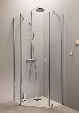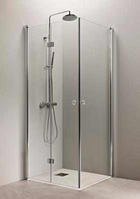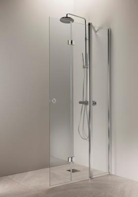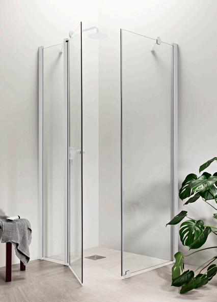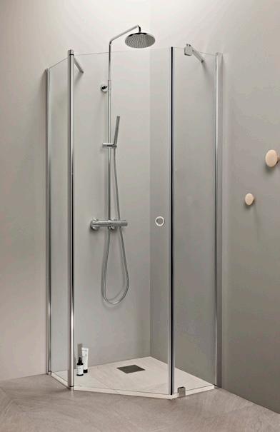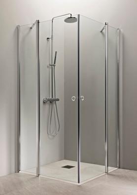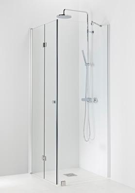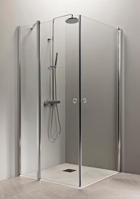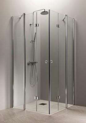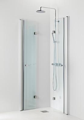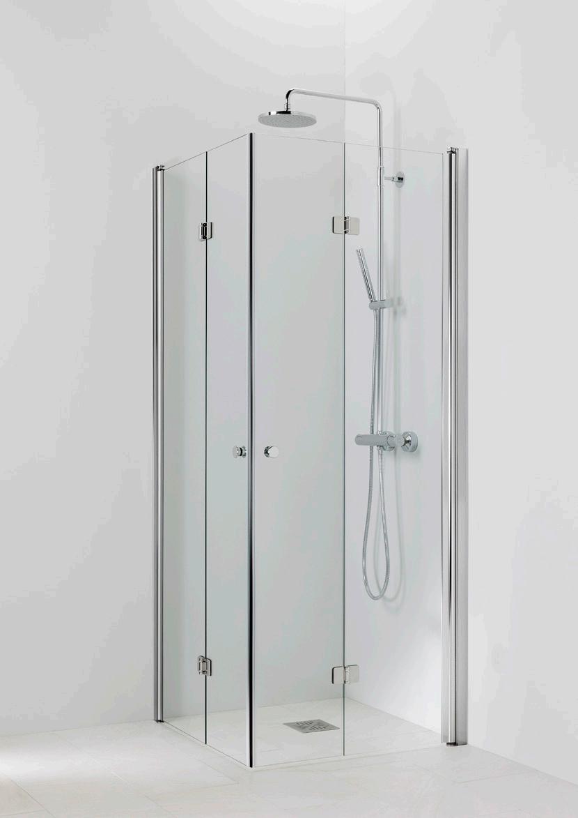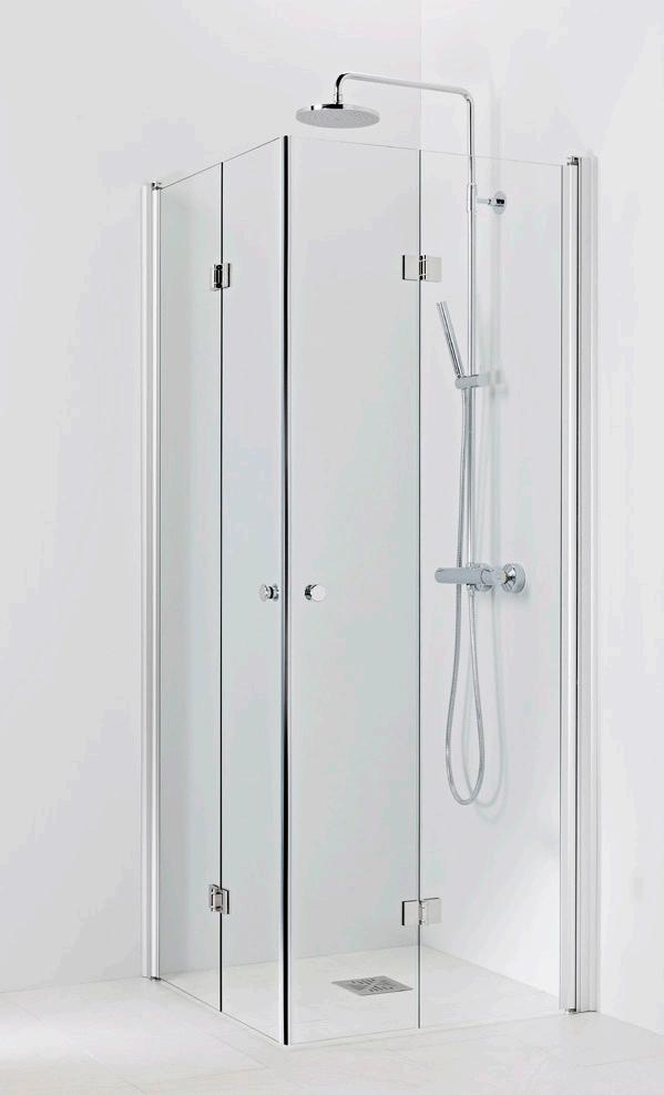 OCEAN 5+5 suihkukulma on kylpyhuoneen tilaihme, jonka taittuvat seinät vapauttavat lattiatilaa muille toiminnoille. Suihkukulma taittuvilla ovilla alk. 730 €. Kuvassa (A800+B800) kirkkaalla lasilla 770 €.