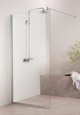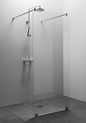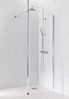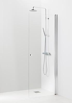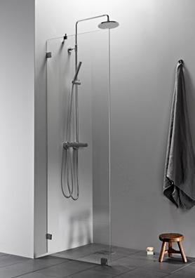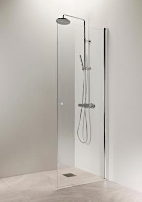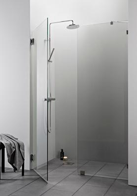 OCEAN 6 kiinteä suihkuseinä alk. 245 €. Kuvassa mittatilaustuote (A750) satiinilasilla ja suoralla seinätuella 445 €.