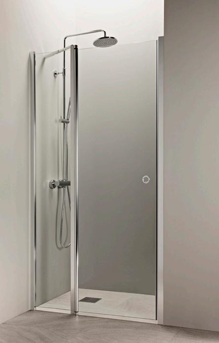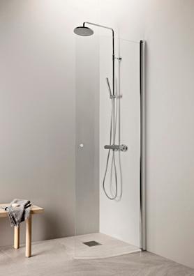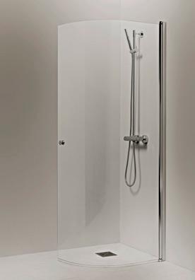 PURO 4 kaarevaa suihkuseinää on saatavana kahdessa eri korkeudessa, 2037 mm ja 2287 mm. Kuvan seinä (750x2037) kirkkaalla lasilla ja nuppivetimellä 285 €.