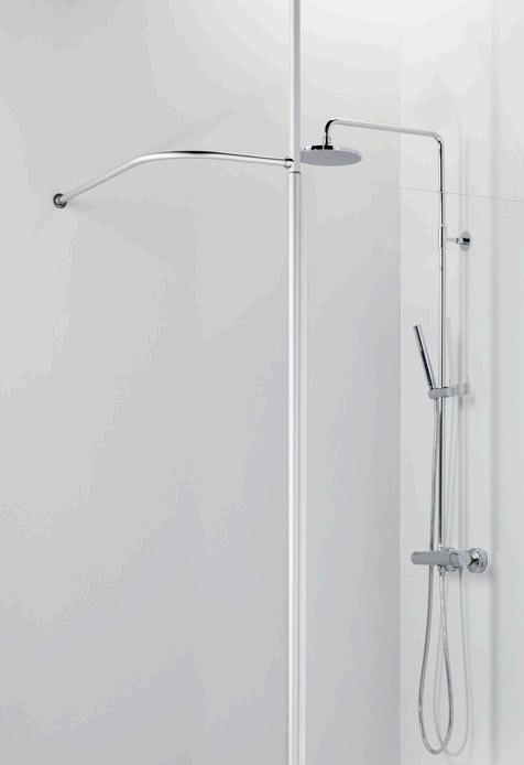 Voidaan asentaa joko kaarevana tai lyhentää suoraksi suihkuverhotangoksi.