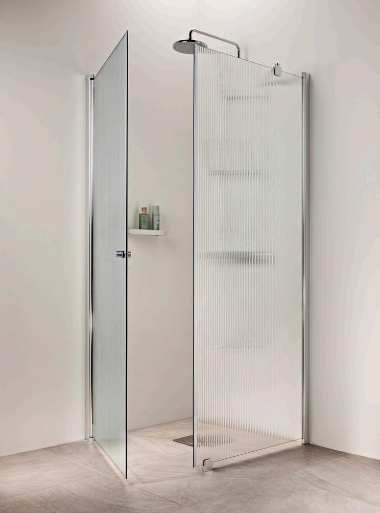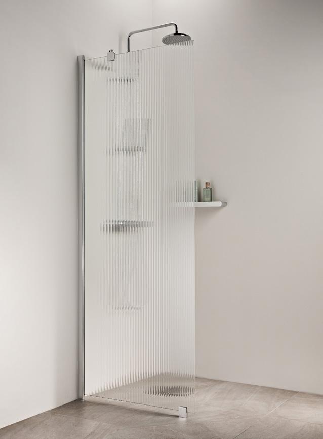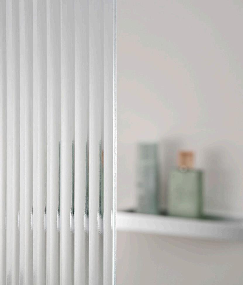 Linjalasin mielenkiintoinen pinta täydentää täydellisesti niin minimalistisia kuin klassisiakin sisustuksia. Se päästää valon kauniisti läpi, luoden avaran ja valoisan tunnelman, tarjoten samalla yksityisyyttä suihkuhetkiin.