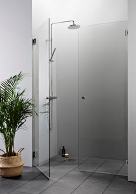 Silkinhimmeän, etsatun lasin toinen puoli on täysin sileä. Lasi päästää valon läpi mutta himmentää näkymän suihkutilaan.