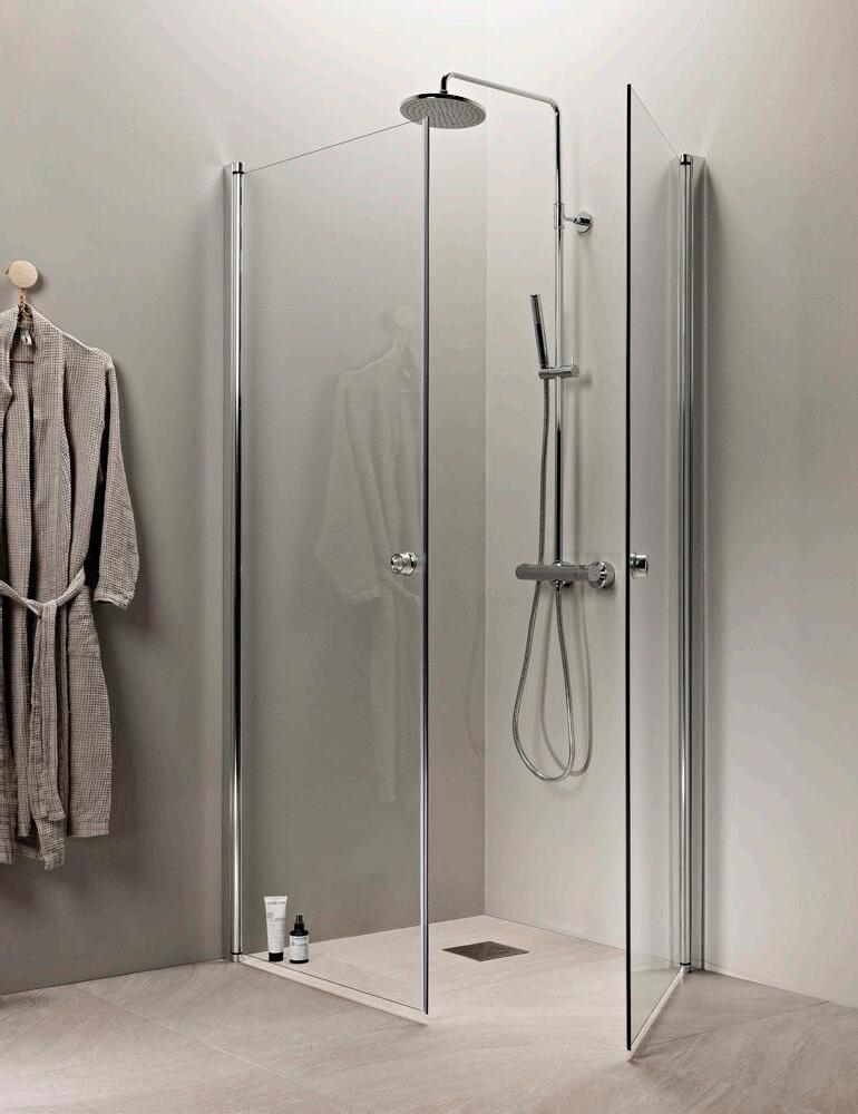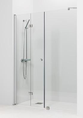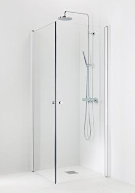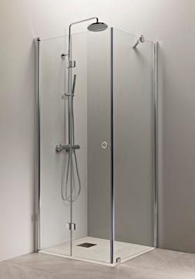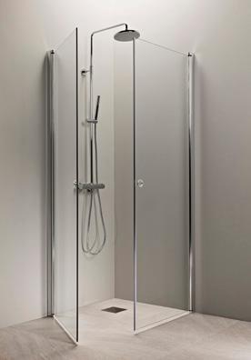 PURO 3+6 suihkukulma ovella ja kiinteällä seinällä alk. 610 €. Kuvan kokonaisuus (A900+B900) linjalasilla ja kiiltävällä profiililla 1210 €.