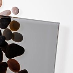 Molemmilta puolilta sileä, läpivärjätty harmaa lasi tuo ryhtiä ja kontrastia kylpyhuoneeseen.