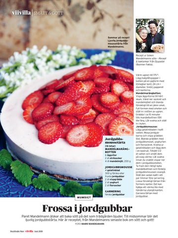 Frossa i jordgubbar Paret Mandelmann älskar att baka sött på det som trädgården bjuder. Till midsommar blir det ljuvlig jordgubbstårta. Här är receptet, från Mandelmanns senaste bok om sött och gott! FOTO MARIE MANDELMANN Stockholm Norr viivilla Juni 2019