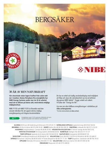 30 ÅR AV REN NATURKRAFT Vår storartade natur lagrar kraften från solen rakt ner i marken. Denna förnybara fria energikälla har NIBE Energy Systems under mer än 30 år arbetat med att ta tillvara på bästa sätt, med minsta möjliga miljöpåverkan. NIBE F1155 och NIBE F1255 är försedda med den senaste tekniken för att uppnå största möjliga energibesparing och högsta årsvärmefaktor.
