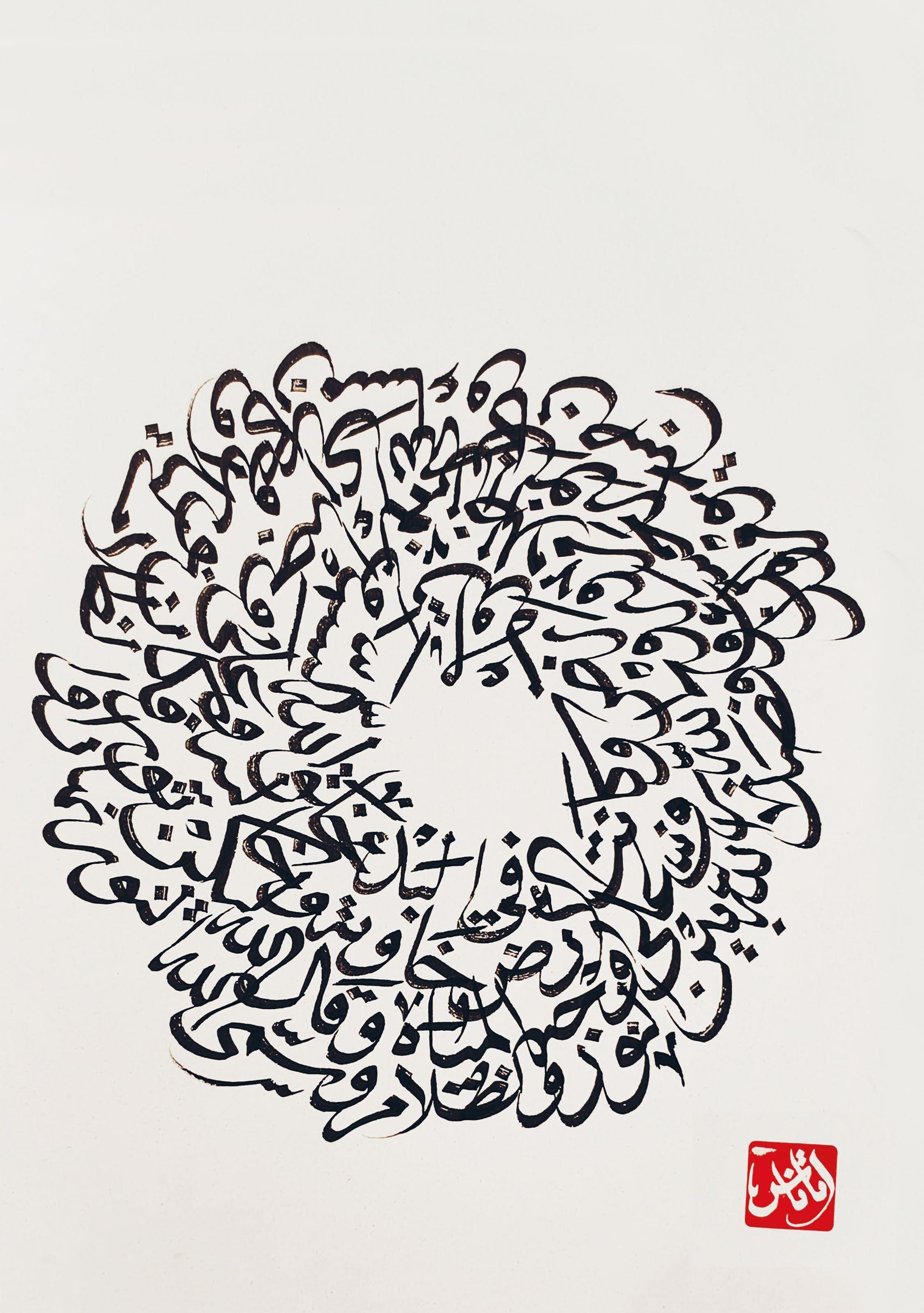 пазар, когото кани на своя изложба в Българския културен център към българското посолство в Дамаск, а самата подготовка се превръща в урок по дисциплина. ”В един момент започваш да гледаш отвъд занаята и да се фокусираш върху огромната традиция, да проявяваш вътрешна рефлексия към нея, а с езика започваш да откриваш извори, исторически натрупвания и как шрифтовете еволюират, достигаш до една по-плътна картина. Това нещо на Запад го няма, калиграфската традиция прекъсва, изчезва като изкуство