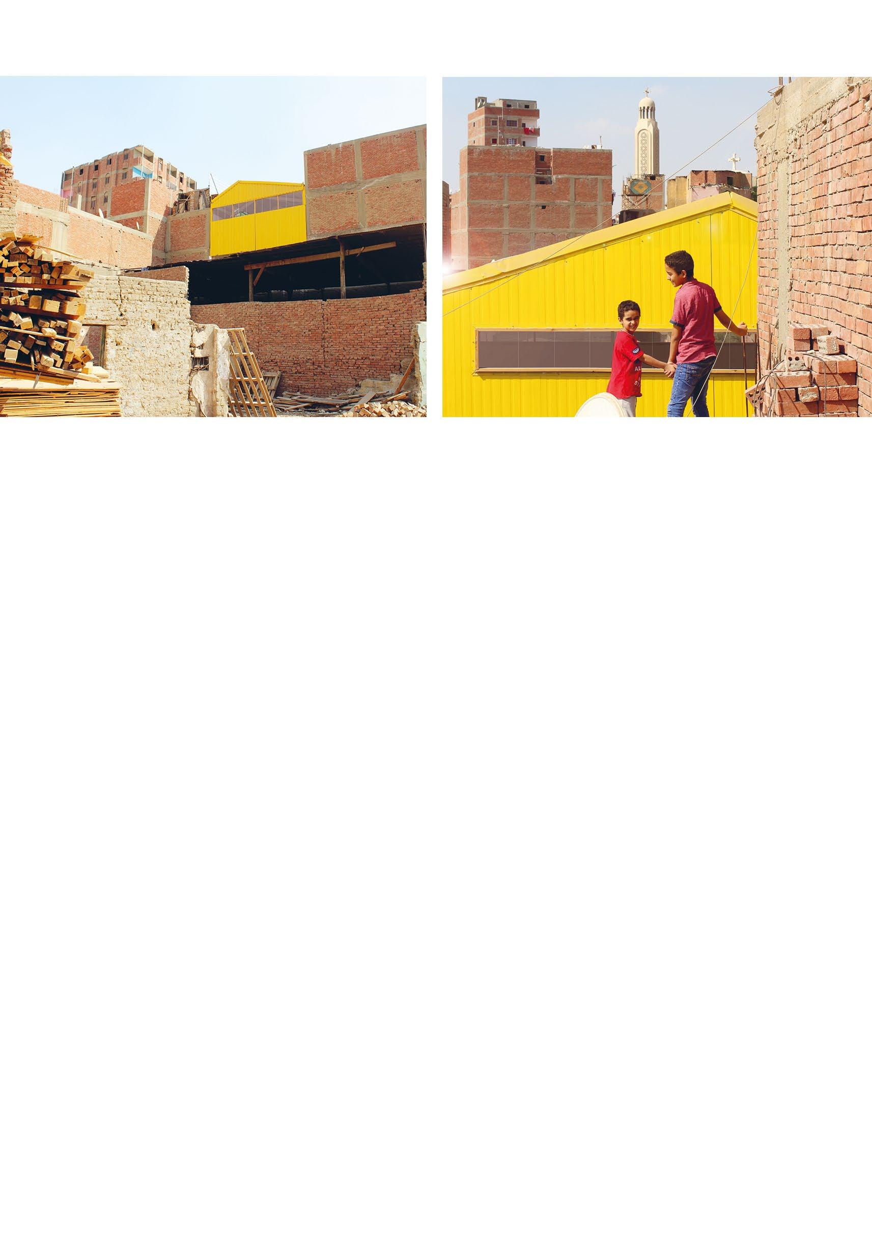 използвани наличните на място ресурси, което подчертава връзката между архитектурата и местните занаятчийски практики. В квартала има множество работилници за дърво и метал, чиито материали и умения намират пряко приложение в реализацията на проекта –в дървената конструкция и в яркожълтата метална облицовка от профилирана ламарина.
