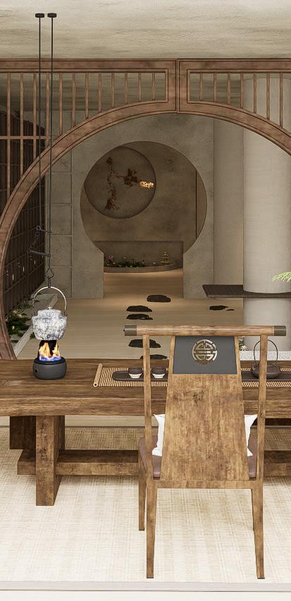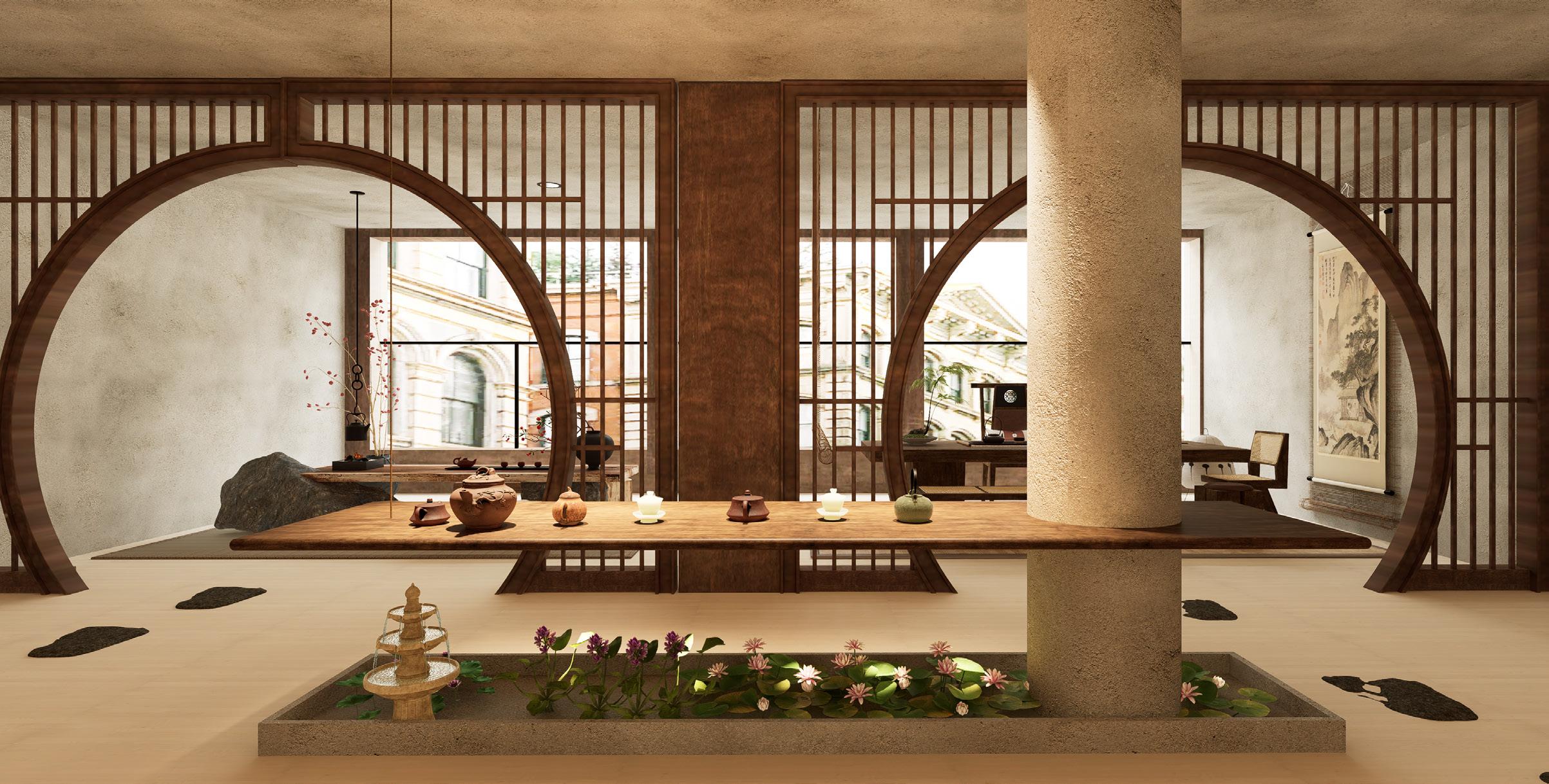 The tea shop is inspired by the enduring elegance of traditional Chinese gardens, a place where people have historically enjoyed the tranquility of nature while sipping tea. The aesthetics of Chinese gardens place a strong emphasis on the art of landscaping, incorporating a variety of techniques and elements. My goal is to capture the spirit of these captivating gardens by integrating fundamental design principles such as scenic borrowing, framing, blocking, clipping, revealing, separating, mirroring, and adding. The aesthetics of Chinese gardens underscore the importance of landscaping artistry, which involves a range of techniques and elements.