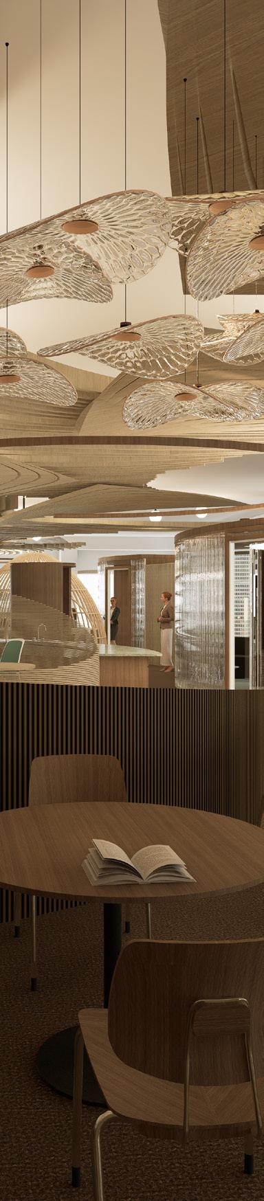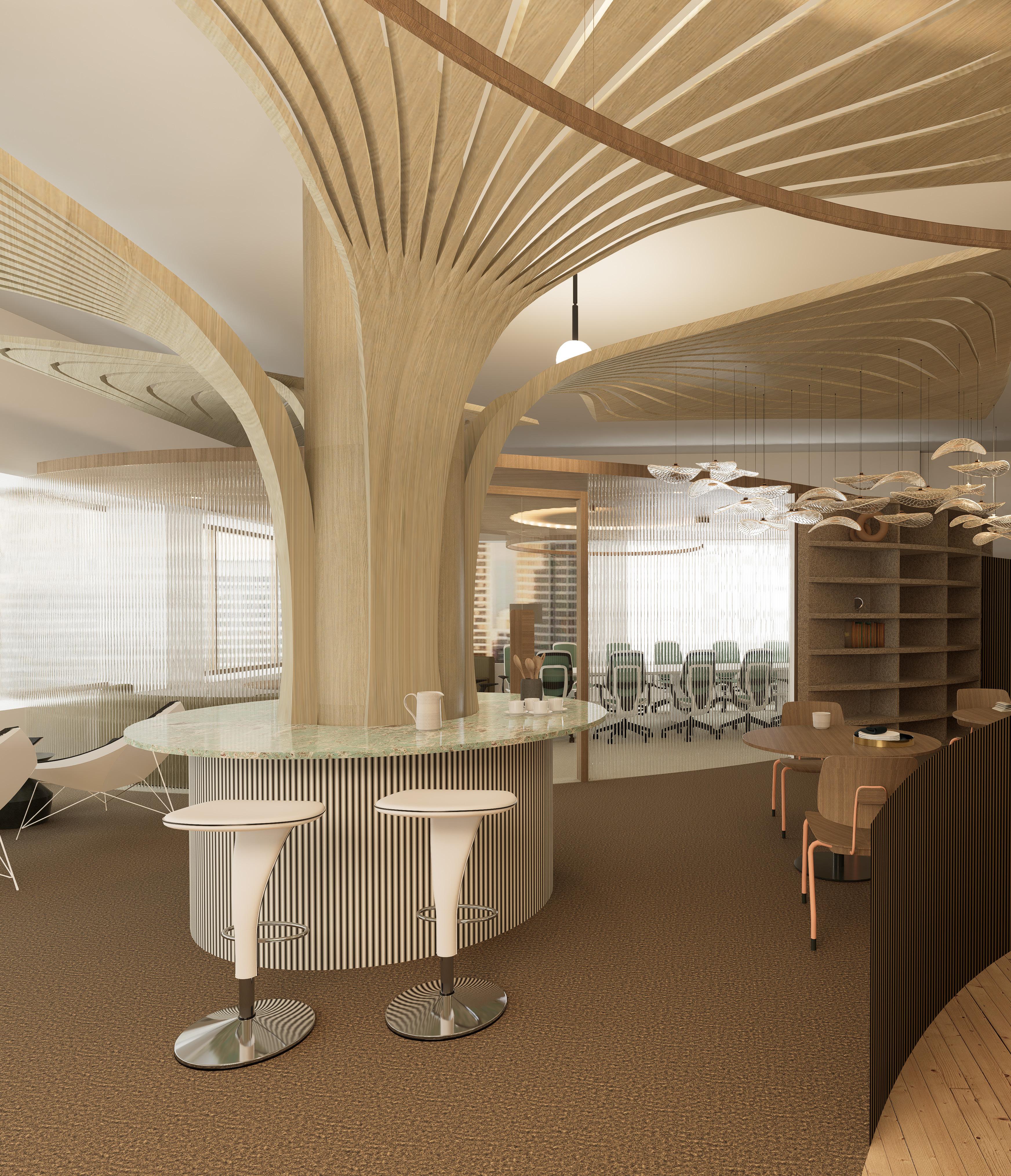 I am planning to design a WWF office that immerses people in a ginkgo-inspired environment. The floor plan will be crafted to resemble the landscape where ginkgo leaves flourish. The design of the ceiling and columns, inspired by the shape of the ginkgo leaf, will further enhance the theme throughout the space. The ginkgo leaf, therefore, symbolizes resilience, longevity, and adaptability, which aligns perfectly with the mission and values of WWF. Just like the ginkgo tree, we want our planet’s biodiversity to thrive and adapt in changing environments. The ginkgo leaf also represents hope, which is at the heart of WWF’s work - the hope for a sustainable future where humans and nature coexist harmoniously.