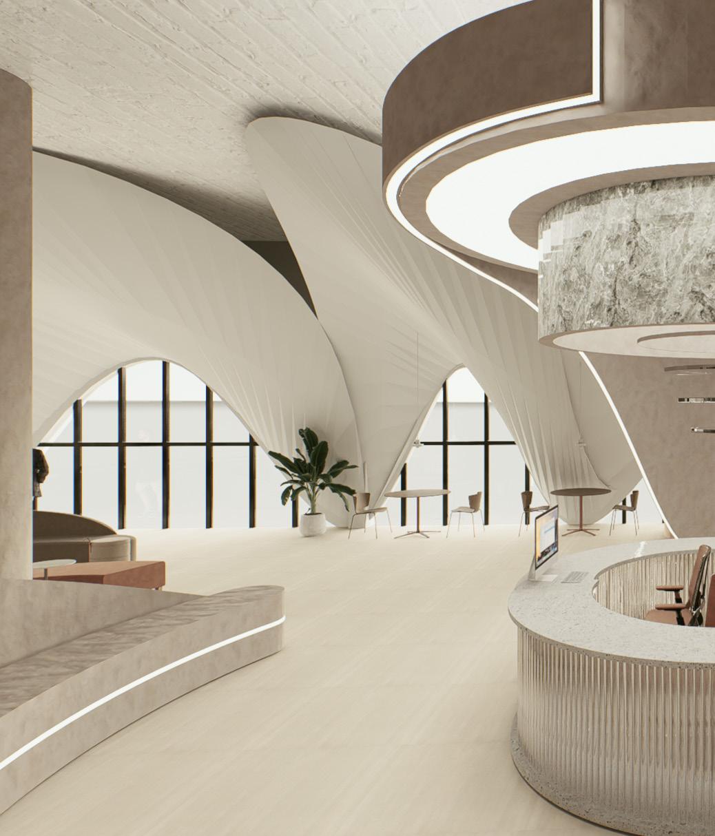 TheDrawing inspiration from Felix Candela’s masterpiece, Los Manantiales, my design for the Outpatient Image Center is a modern architectural interpretation that embraces the elegance and structural innovation of the hyperbolic paraboloid. This distinctive shape, celebrated for its ability to produce curvature from straight lines, is the foundation upon which the image center’s design is built. In homage to Candela’s technique, the roof of the image center extends with a graceful continuity from the interior to the exterior, blurring the boundaries between the built environment and the natural world. This fluid transition not only enriches the aesthetic quality of the structure but also represents the fluidity and seamless journey of care that patients experience within.
