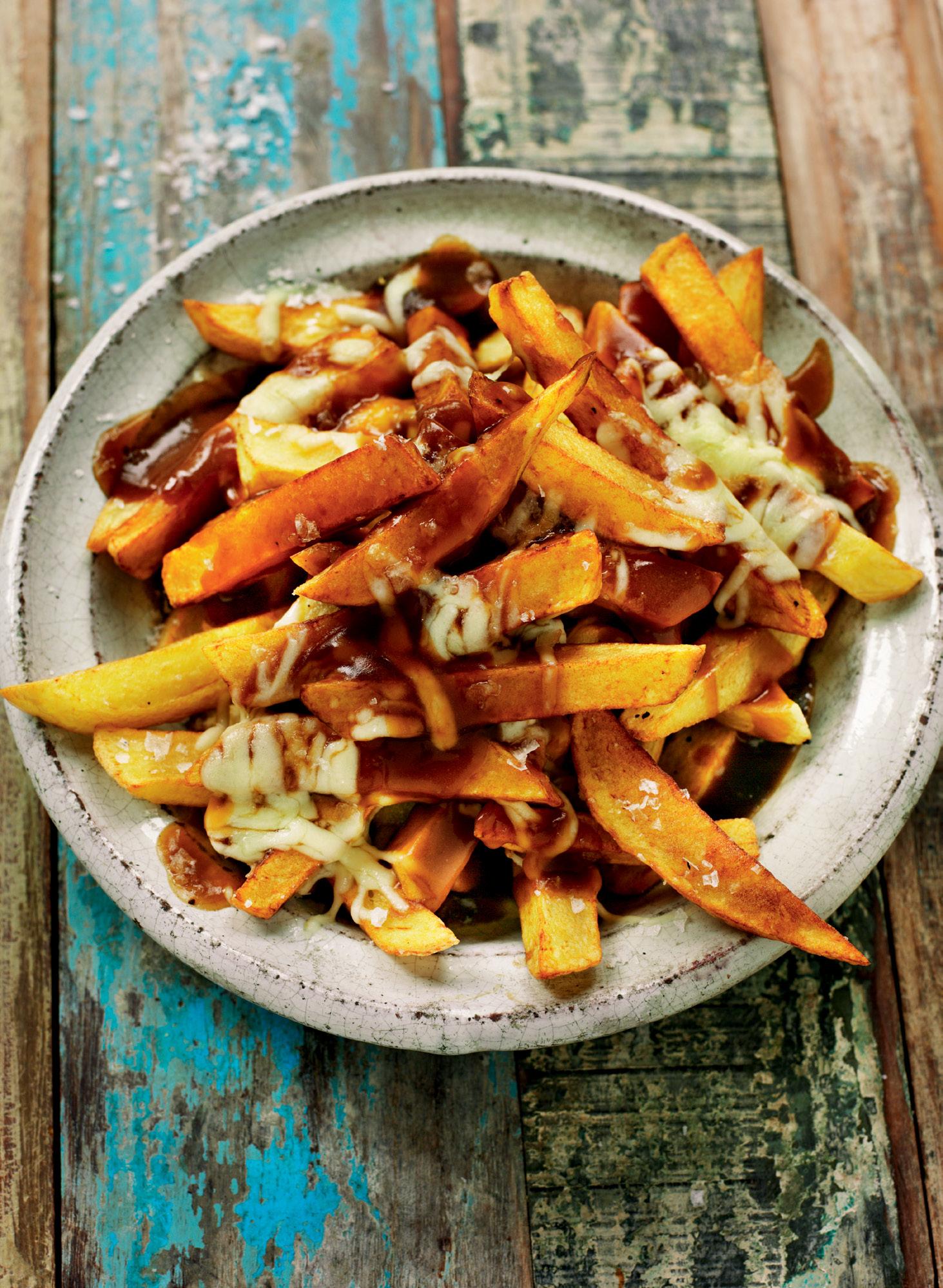 Vegetable oil, for frying 5 large potatoes 2 tbsp butter 2 tbsp all purpose (plain) flour 2 pints (950ml) good quality veal or beef stock 8 oz (225g) mozzarella, shredded, or Cheddar, grated This indulgent mix of fries, salty cheese curds and gravy is the ultimate French-Canadian comfort food. As it’s difficult to track down cheese curds, recreate the dish with a cheese that melts well, like mozzarella or Cheddar.