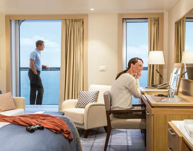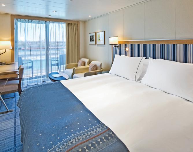 Onboard, discover serene Scandinavian-inspired spaces filled with natural light. Each stateroom is beautiful, functional and complete with a veranda, ensuring guests are always treated to an exceptional view.