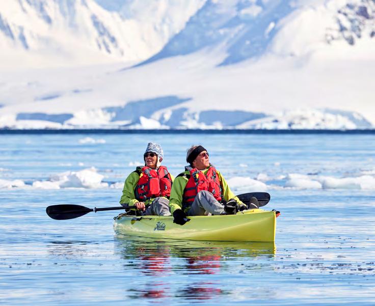 There is perhaps nothing more peaceful than slowly kayaking through the still waters of Antarctica. One of the most intimate experience s of t he “ White Continent”, the kayaks allow you to experience your surroundings up close. You will note how untouched the environment is, and as such, how quiet. Free from the noise of modern society, you can hear everything, including the distinct crackling sound glacial ice makes as air bubbles trapped inside are released.