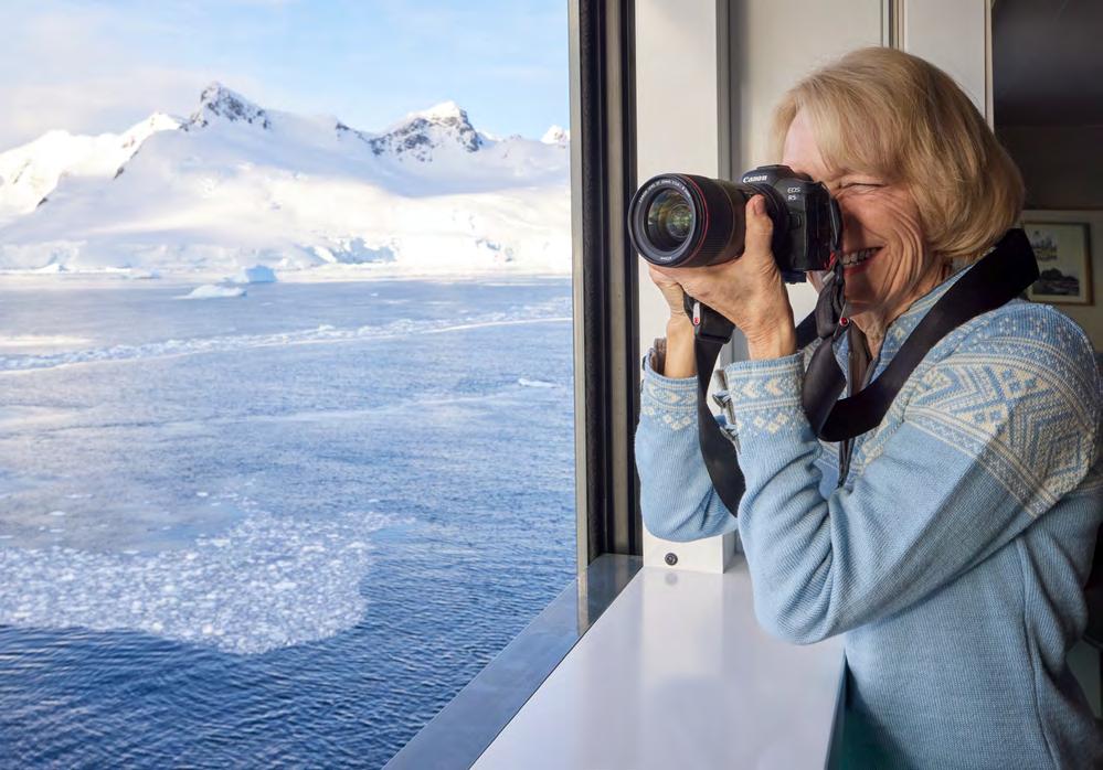 1. Photography in Antarctica comes with its own set of challenges – one of which is condensation. As you move from a cold exterior into the warmth of the ship, a film of condensation will quickly fog up your lens. One solution is to bring a sealable airtight bag to put your camera and lenses in so they can slowly adjust to a warmer temperature. Each Viking Octantis stateroom comes with its own drying cabinet for wet clothes and I discovered that when I put my cameras in there in the time it took to have lunch, they were all nicely condensation free for the afternoon.