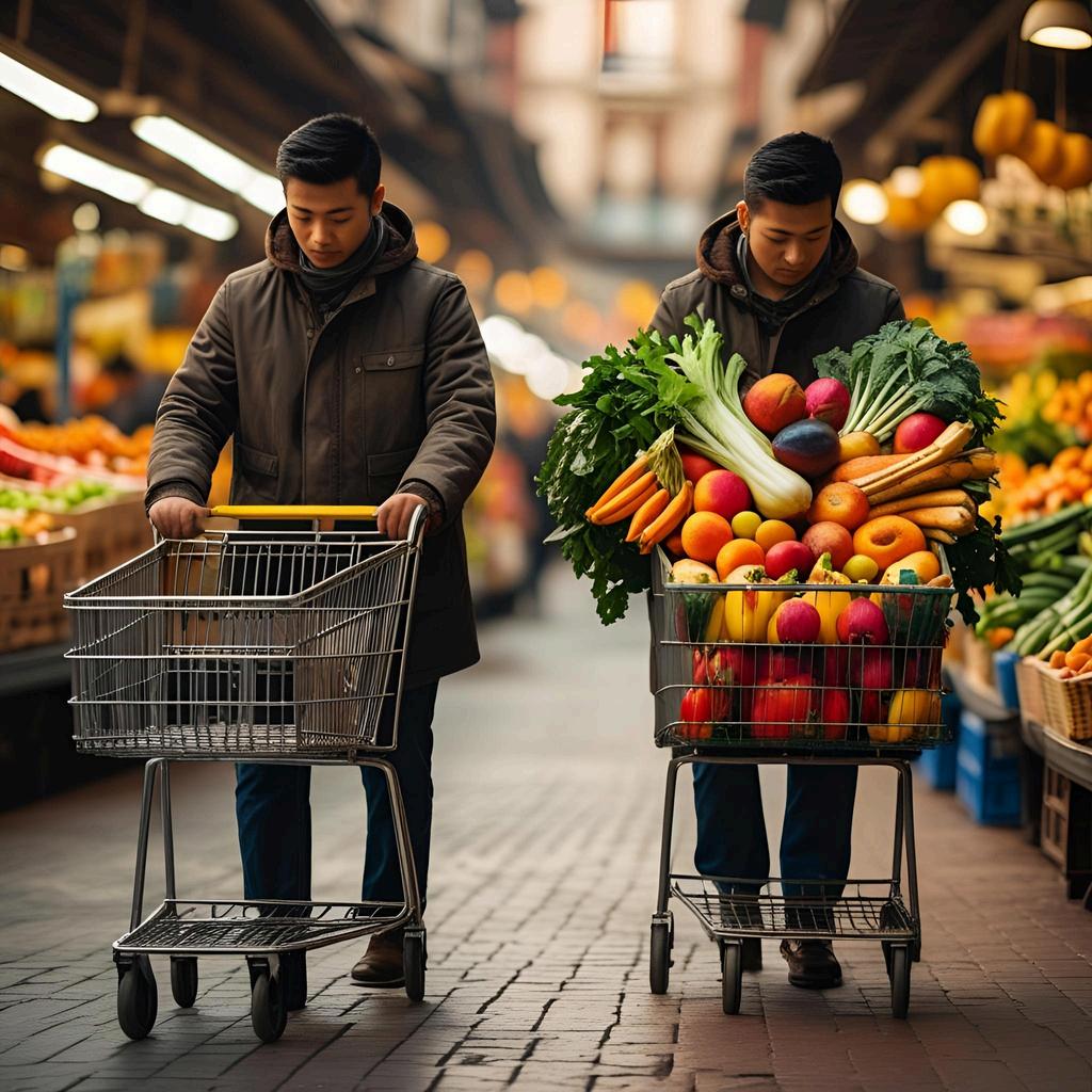 IN THE IMAGE, WE SEE A PERSON PUSHING TWO SHOPPING CARTS ONE IS EMPTY, AND THE OTHER IS FULL OF GROCERIES WHEN THE SAME AMOUNT OF FORCE IS APPLIED TO BOTH CARTS, THE EMPTY CART MOVES AND SPEEDS UP MUCH FASTER THAN THE FULL ONE THIS HAPPENS BECAUSE THE EMPTY CART HAS LESS MASS, MAKING IT EASIER TO ACCELERATE ON THE OTHER HAND, THE FULL CART HAS MORE MASS, WHICH MAKES IT HARDER TO PUSH AND CAUSES IT TO ACCELERATE MORE SLOWLY. THIS SITUATION CLEARLY DEMONSTRATES NEWTON’S SECOND LAW OF MOTION, WHICH STATES THAT THE ACCELERATION OF AN OBJECT DEPENDS ON ITS MASS AND THE FORCE APPLIED TO IT THE LAW IS EXPRESSED WITH THE FORMULA F = MA, WHERE F IS THE FORCE, M IS THE MASS, AND A IS THE ACCELERATION IF THE FORCE REMAINS THE SAME, THE OBJECT WITH LESS MASS (THE EMPTY CART) WILL HAVE A GREATER ACCELERATION, AND THE ONE WITH MORE MASS (THE FULL CART) WILL HAVE A SMALLER ACCELERATION