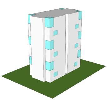 A seperate building of 4 BHK flats is formed. Every floor consists of two 4 BHK flats, heald toghether by a service core. Double height balconies are formed on alternate floors.