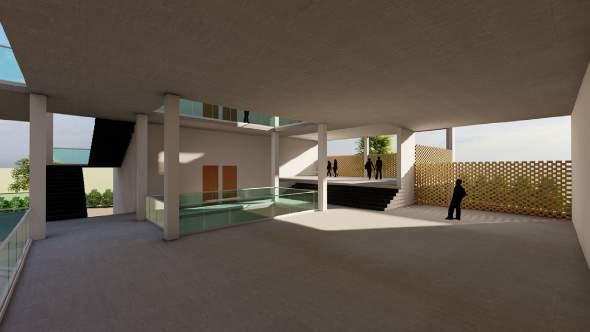 The idea was to create the entrance foyer and waiting area around the main tree near the road such that the tree separates the school premises and the waiting area which has a jali wall around.