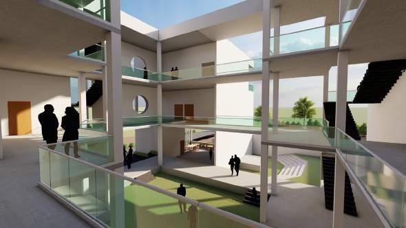 The clusters are designed in such a way that the first classroom is two levels up from the plinth level and the next classroom is again two levels up from the last one.