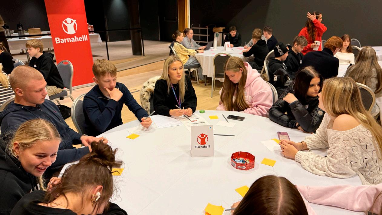 ýmsum hliðum og læra að þekkja muninn á heilbrigðum og óheilbrigðum samskiptum, þekkja birtingamyndir ofbeldis, hvert bæði þolendur og gerendur geta leitað eftir aðstoð, hvaða úrræði eru í boði, við hverja er best að tala og eins um mikilvægi fræðslu og forvarna eins og Barnaheill standa að. Nemendur voru sér og sínum skólum til mikillar fyrirmyndar, tóku virkan þátt í samtalinu og voru bæði málefnalegir og kurteisir. Ungmennaþinginu lauk svo um hádegi með veislu þar sem þátttakendum var boðið upp á pizzur og samlokur eftir góðar umræður. Allir fengu svo hleðslubanka og margnota taupoka að kveðjugjöf frá Barnaheillum.