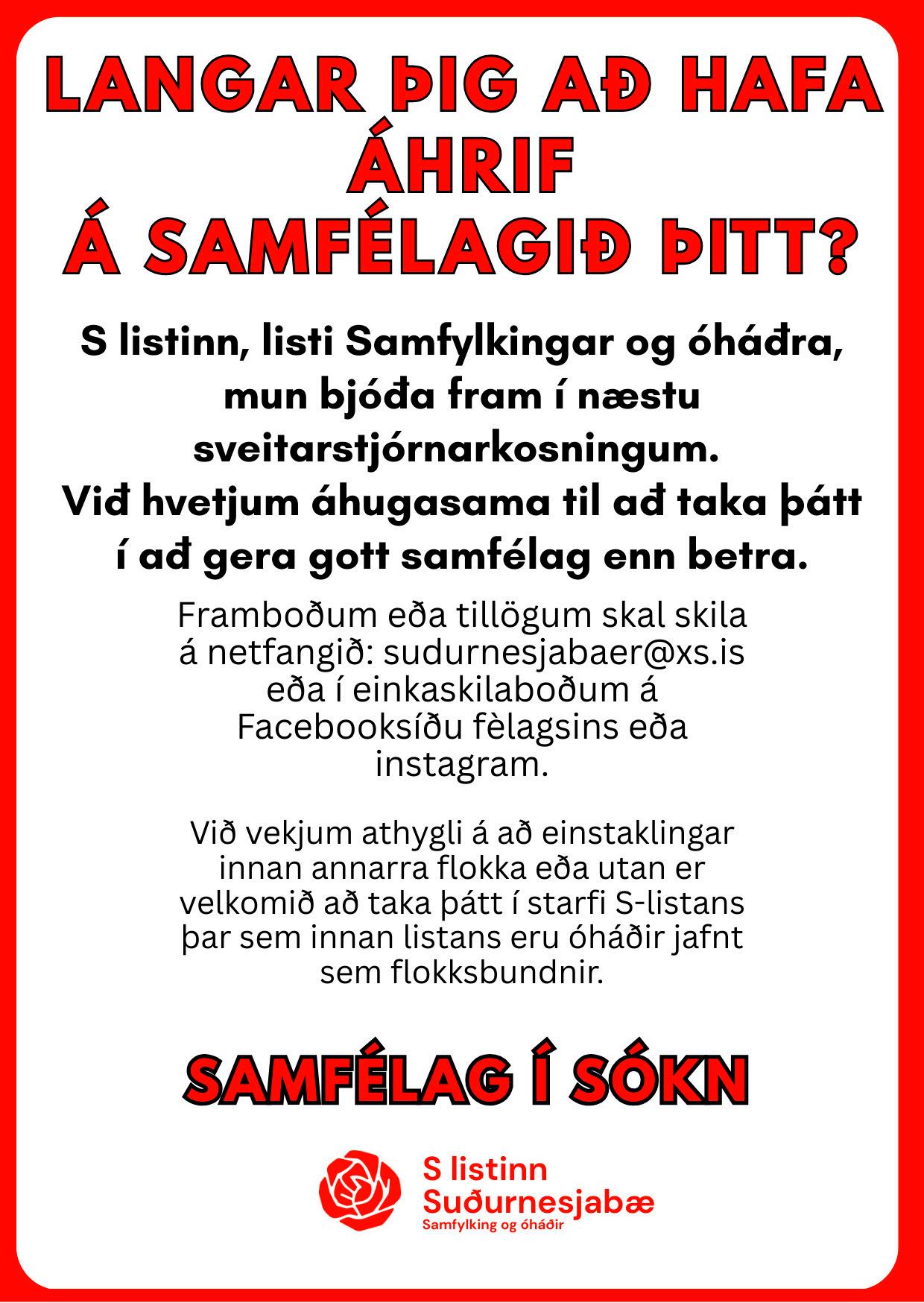 Guðný Birna Guðmundsdóttir leiðir lista Samfylkingarinnar í Reykjanesbæ í sveitarstjórnarkosningum 16. maí næstkomandi. Listinn var borinn upp til samþykktar af Kristrúnu Frostadóttur forsætisráðherra á fjölmennum félagsfundi og samþykktur samhljóða. Stjórn Samfylkingarinnar í Reykjanesbæ lagði til uppstillingaraðferð við framboðslistann, engar aðrar tillögur voru lagðar fram og var tillagan samþykkt án athugasemda.