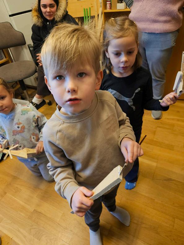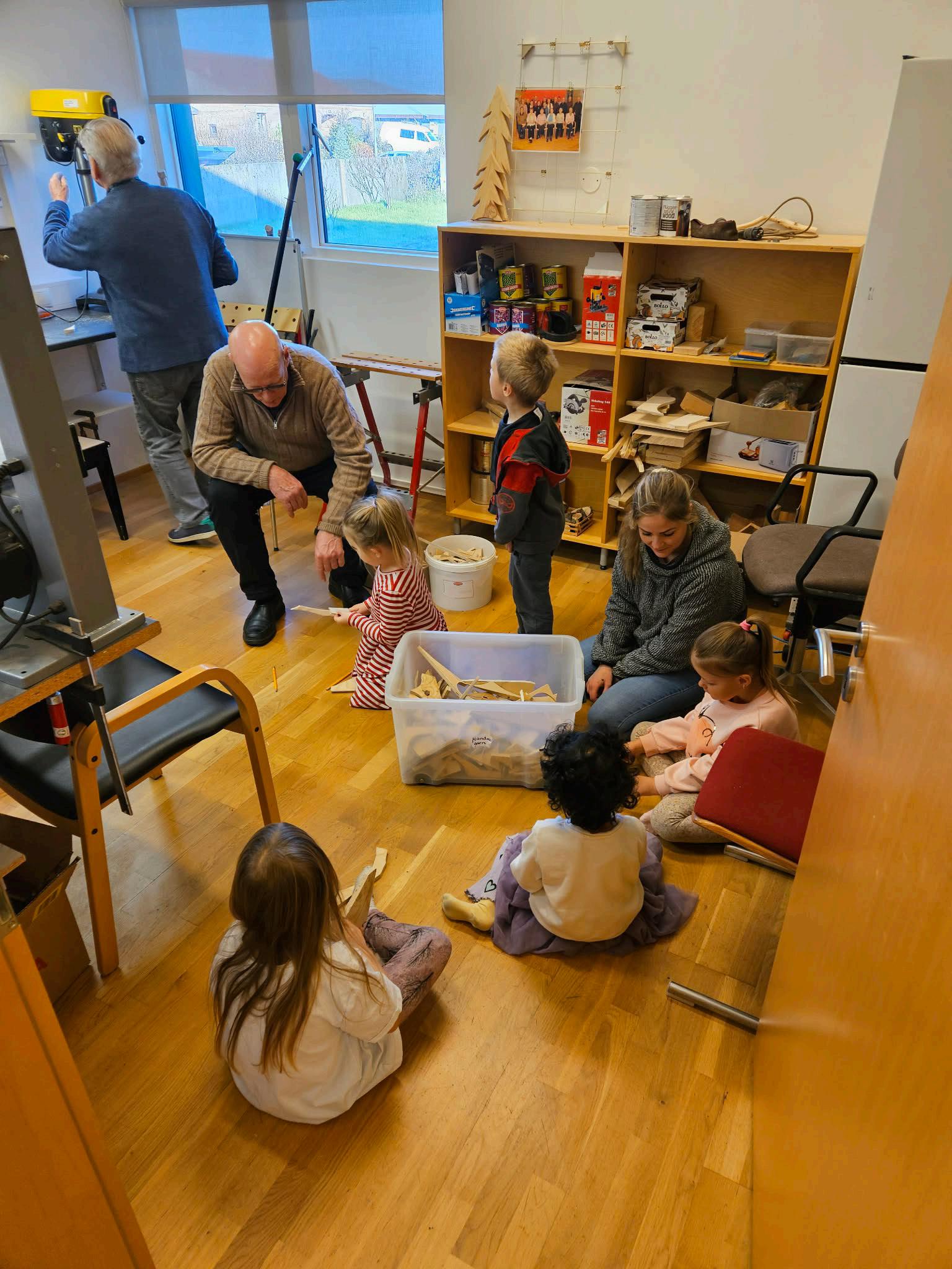 Í vetur hafa elstu börn Heilsuleikskólans Suðurvalla í Vogum og áhugasamir í smíðahóp á vegum félagsstarfs aldraðra í Álfagerði verið í skemmtilegu samstarfi. Börnin hafa komið í litlum hópum og búið til fugla úr tré undir leiðsögn smíðahópsins. Þetta hafa verið þó nokkrar heimsóknir og hafa heppnast mjög vel.