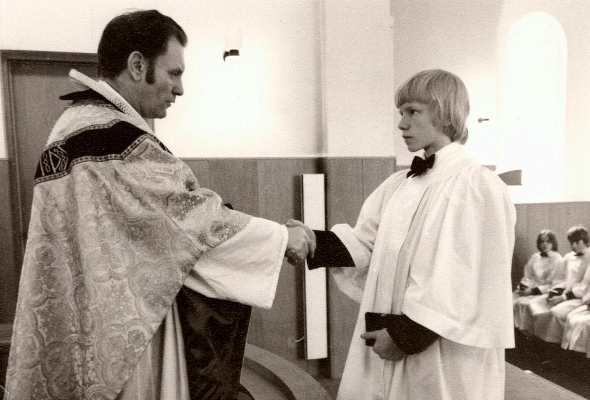 Séra Hjörtur Magni fermdi mig í Hvalsneskirkju. Við vorum sex úr árganginum sem létum ferma okkur í kirkjunni, hinir létu ferma sig í Safnaðarheimilinu sem er nú Sandgerðiskirkja.