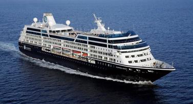 Skemmtiferðaskipið Azamara Quest er um 30.000 tonna skip sem er á hringsiglingu um Ísland.