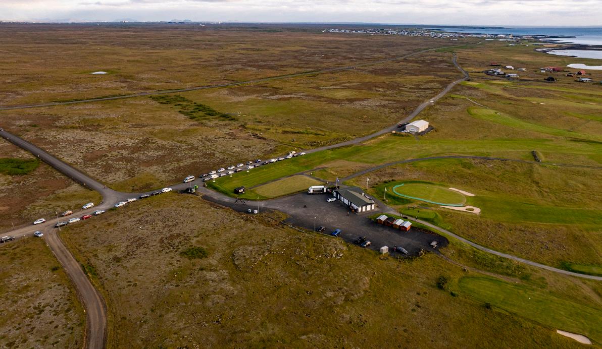 Sandgerðingar og Garðmenn gengu saman frá sitt hvorum staðnum við upphaf Vitahátíðar í Suðurnesjabæ á mánudag og enduðu í Skólamatar kjötsúpu og grilli frá Kjörbúðinni. Svæðið hinum megin við golfskálann er nálægt því að vera miðdepillinn á milli Garðs og Sandgerðis, sem margir Garðmenn vilja sjá nýja gerfigrasvöll, skóla og fleira rísa.