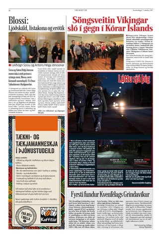 Söngsveitin Víkingar sló í gegn í Kórar Íslands ■■Söngsveitin Víkingar komst áfram eftir símakosningu í Kórar Íslands síðastliðið sunnudagskvöld. Þátturinn var sýndur í beinni útsendingu Stöðvar 2. Víkingarnir eru nú komnir áfram í undanúrslit eftir flutning þeirra á laginu Söknuður eftir Vilhjálm Vilhjálmsson. Kórstjóri Víkinganna er Jóhann Smári Sævarsson. Kór Keflavíkurkirkju tók einnig þátt í keppninni sama kvöld en komst ekki áfram. Söngvarinn Friðrik Dór Jónsson er kynnir þáttanna og dómnefndina skipa tónlistarfólkið Kristjana Stefánsdóttir, Ari Bragi Kárason og Bryndís Jakobsdóttir.