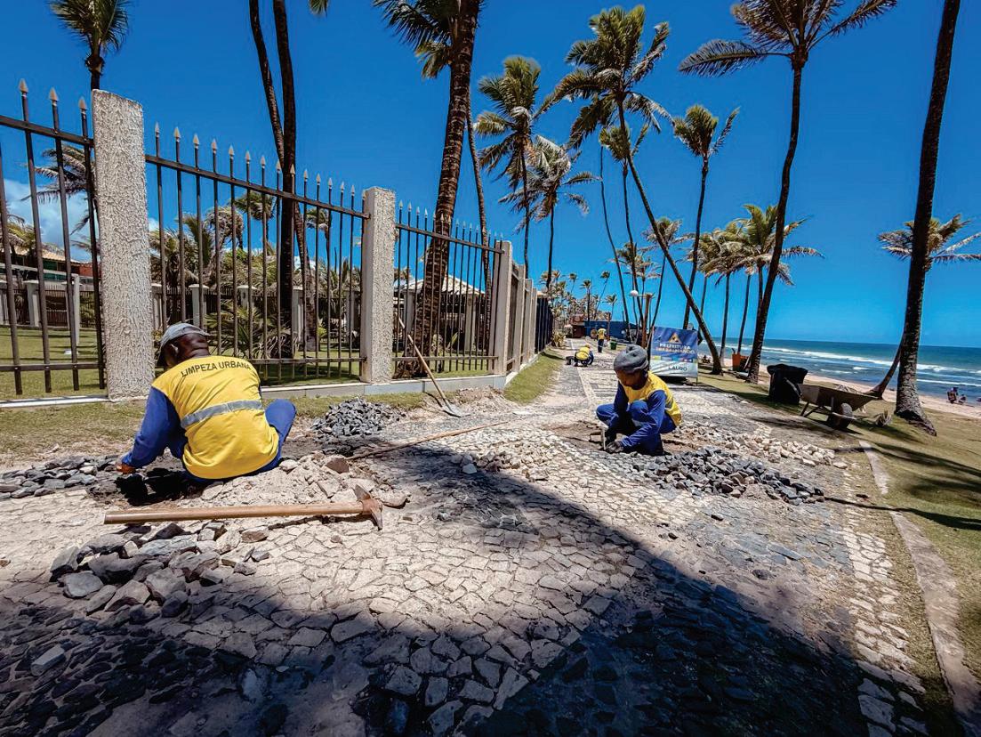A Prefeitura de Lauro de Freitas dá continuidade aos serviços de manutenção dos 2,45 km do calçadão da orla entre Vilas do Atlântico e Buraquinho, um dos principais espaços de convivência e lazer do município.