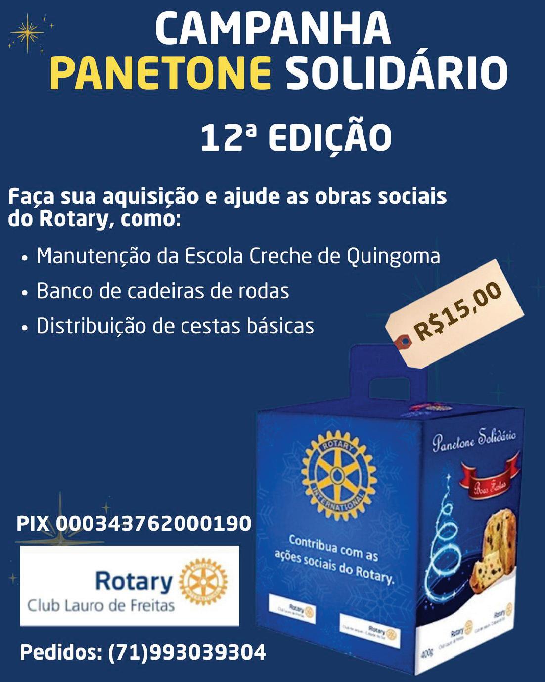 ROTARY CLUB LAURO DE FREITAS promove a 12ª edição do projeto PANETONE SOLIDÁRIO