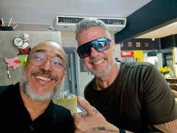 O cantor Tuca Fernandes (dir.) sempre renova suas lembranças visitando Vilas do Atlântico, onde “tudo começou”. Em sua mais recente passagem por aqui, para abraçar a mãe, d. Wanda e rever amigos, Tuca foi se deliciar com os sabores do variado bufê do restaurante Dom Bastião, sendo recebido pelo proprietário Cleison Simões.