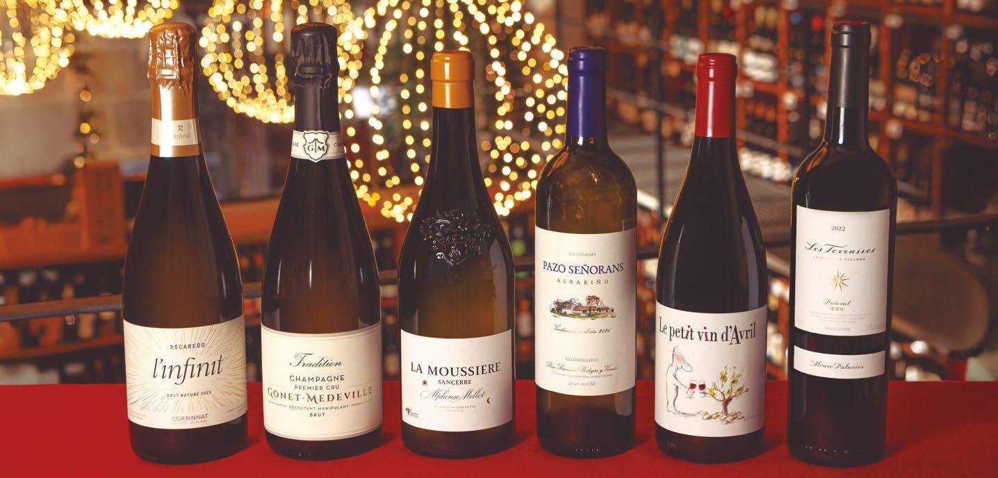 Este mes de diciembre os ofrecemos una propuesta muy especial para brindar durante las Fiestas, con un vino para cada ocasión. Desde la Champagne hasta el corazón del Penedès, dos espumosos de alto nivel. Dos grandes blancos, un albariño de las Rías Baixas y un Sancerre del valle de Loire. Y dos magníficos vinos tintos, un Rhône y un Priorat.