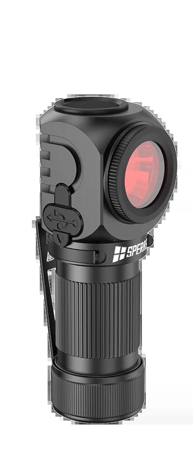 TH4 Smidig lampa där man lätt kan ändra färg mellan vitt, grönt och rött ljus. Zoom ger möjlighet till längre avstånd. Dimmer