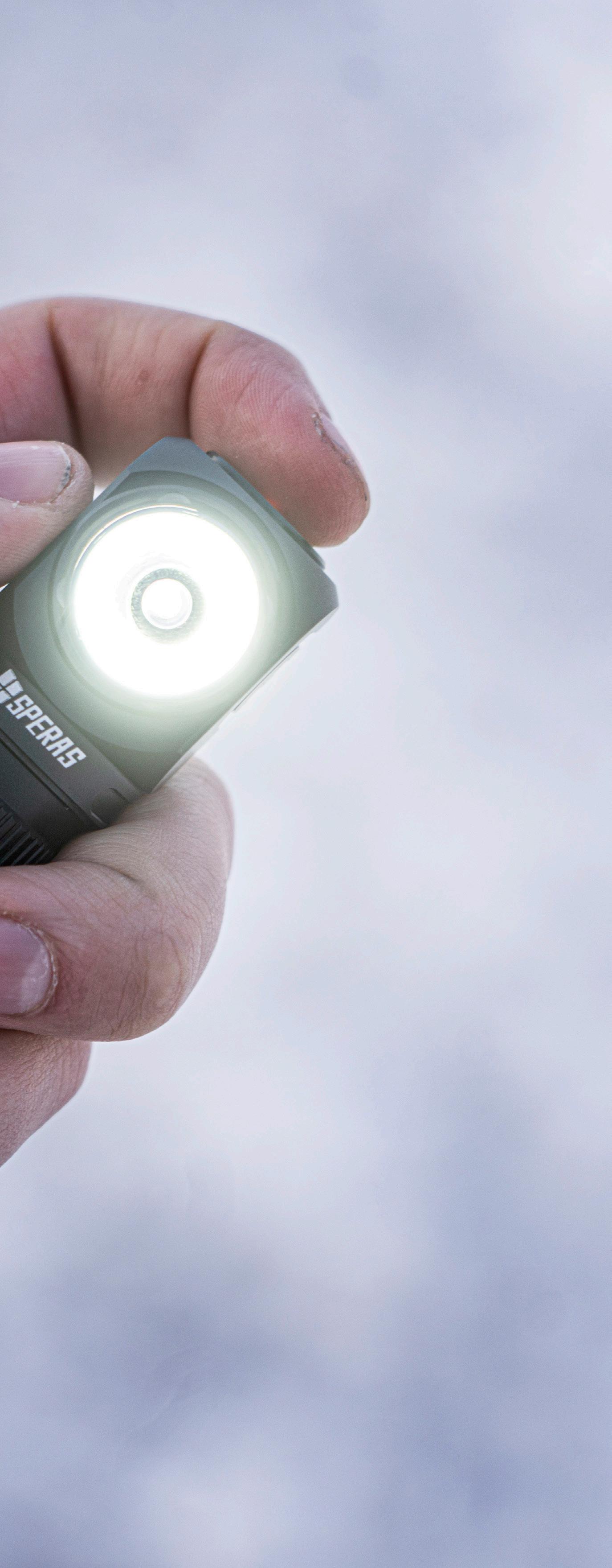 Batteripaketet kan fästas på ditt skärp, eller vår ergonomiska batteriväst för extra bekvämlighet. Indikator för strömstyrka så att du enkelt kan övervaka återstående drifttid; perfekt för kvällspromenader, löpturer, jakt och eftersökningar. Vikt på endast 73 gram och ett ergonomiskt huvudband som är lätt att bära även under längre äventyr.