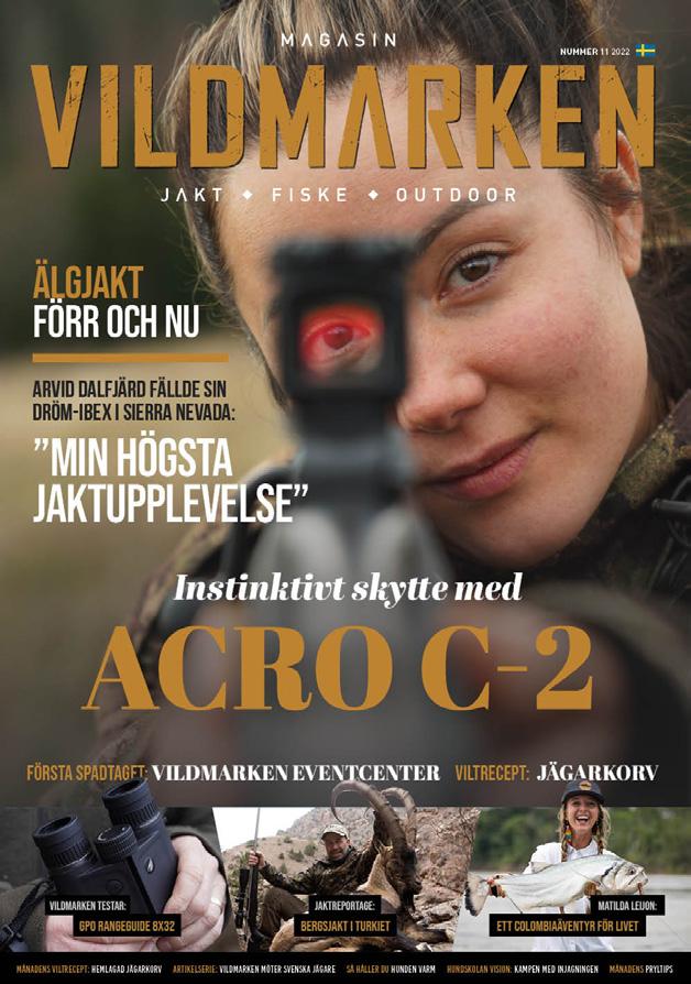 Vad gäller prylar och recensioner så har vi bland annat tittat närmare på Aimpoint COA R, Aimpoints senaste generation av helt slutna rödpunktsikten, en nyhet som tagit fram i samarbete med Glock och som vuxit fram ur ett helt annat användningsområde än jakt, men som visat sig fungera mycket väl i skogen.