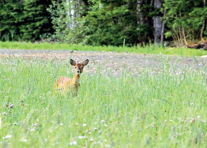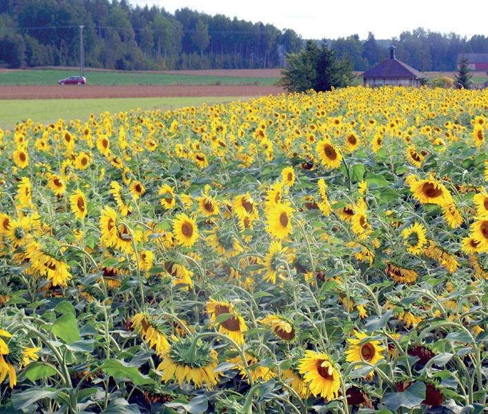Auringonkukka 60 %, Keltalupiini 20 %, Rehuvirna 15 %, Hunajakukka 5 %.