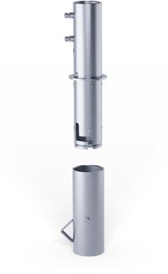 Grundsätzlich besteht die Lösung aus zwei Teilen, dem Bodenschraubanker und dem Hülsen-Oberteil.
