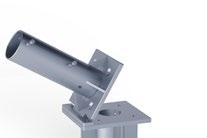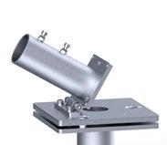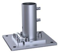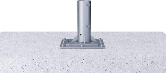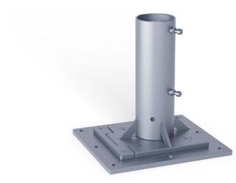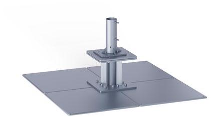 Das Hülsen-Oberteil wird auf die Flanschplatte des Bodenschraubankers mit drei Schrauben aufgeschraubt. Mit drei weiteren Stellschrauben wird ausgerichtet, so dass der Schirm vertikal steht.
