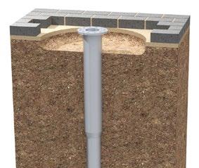 Pflastersteine und Kies ca. 15 cm tief abtragen. Mit einem Bohrer Ø 40 mm, senkrecht am Einbaupunkt vorbohren.