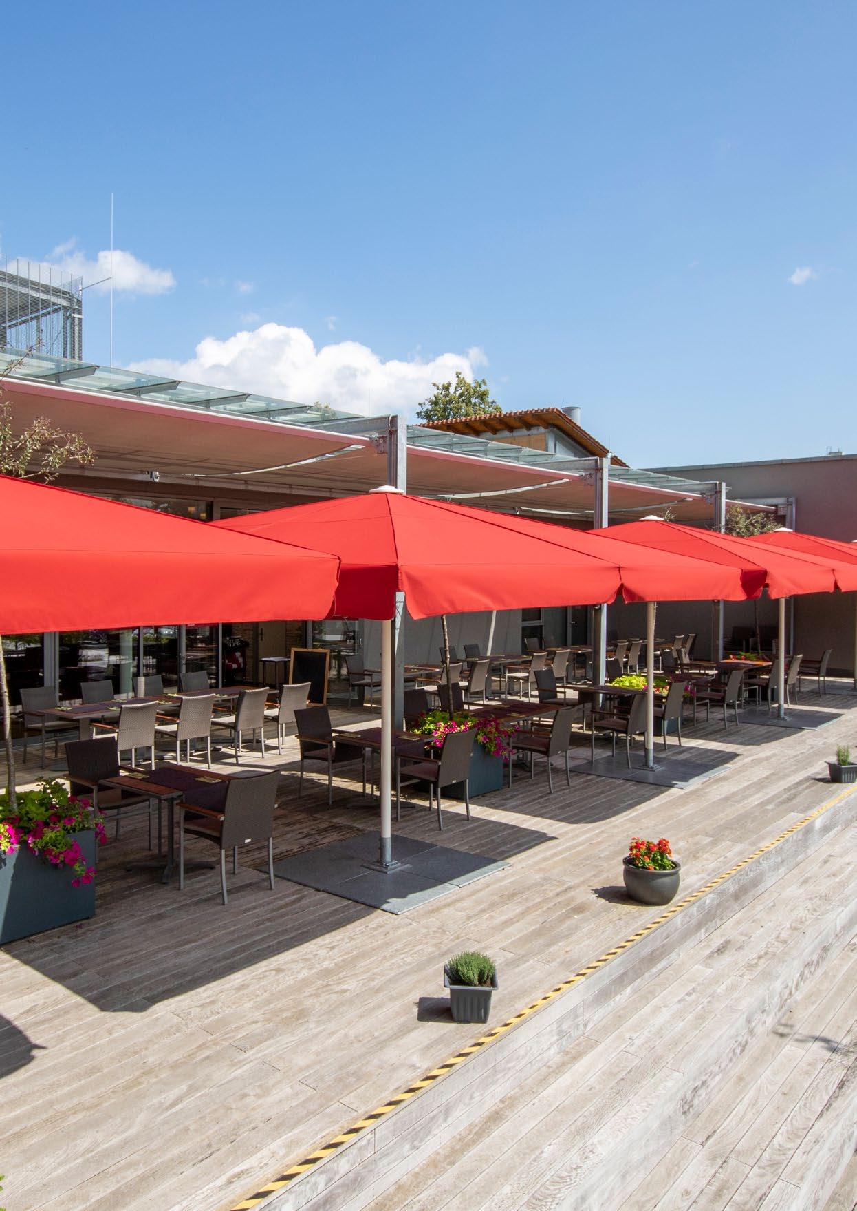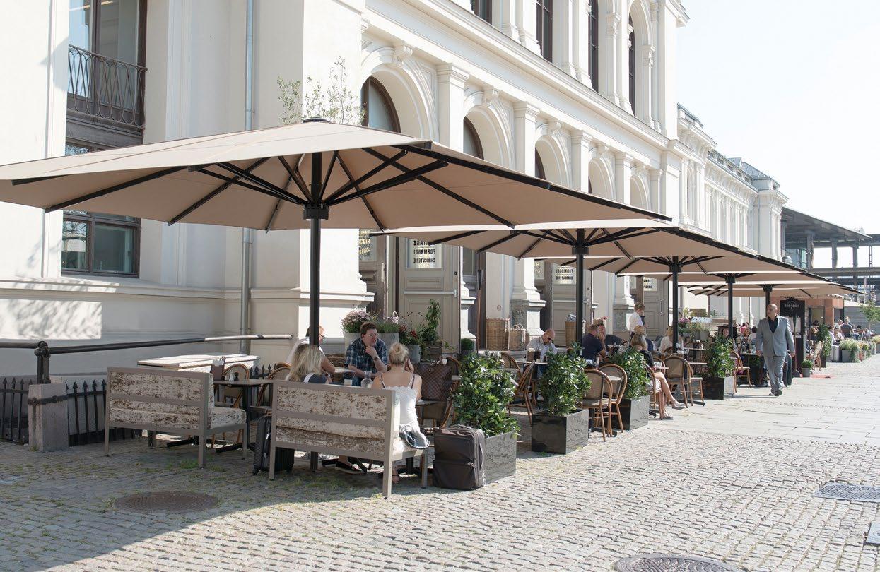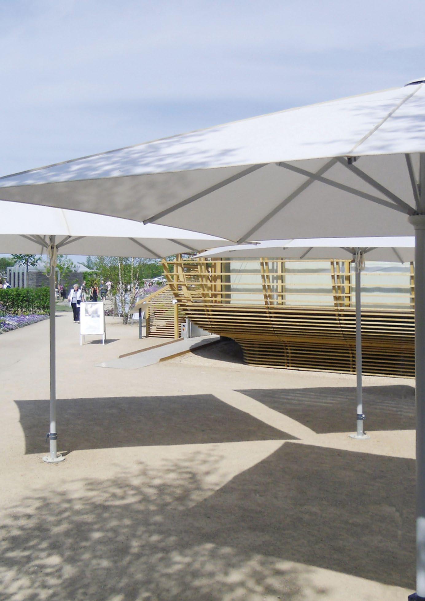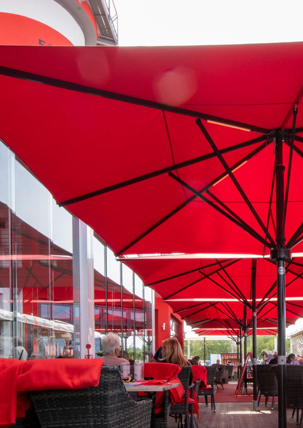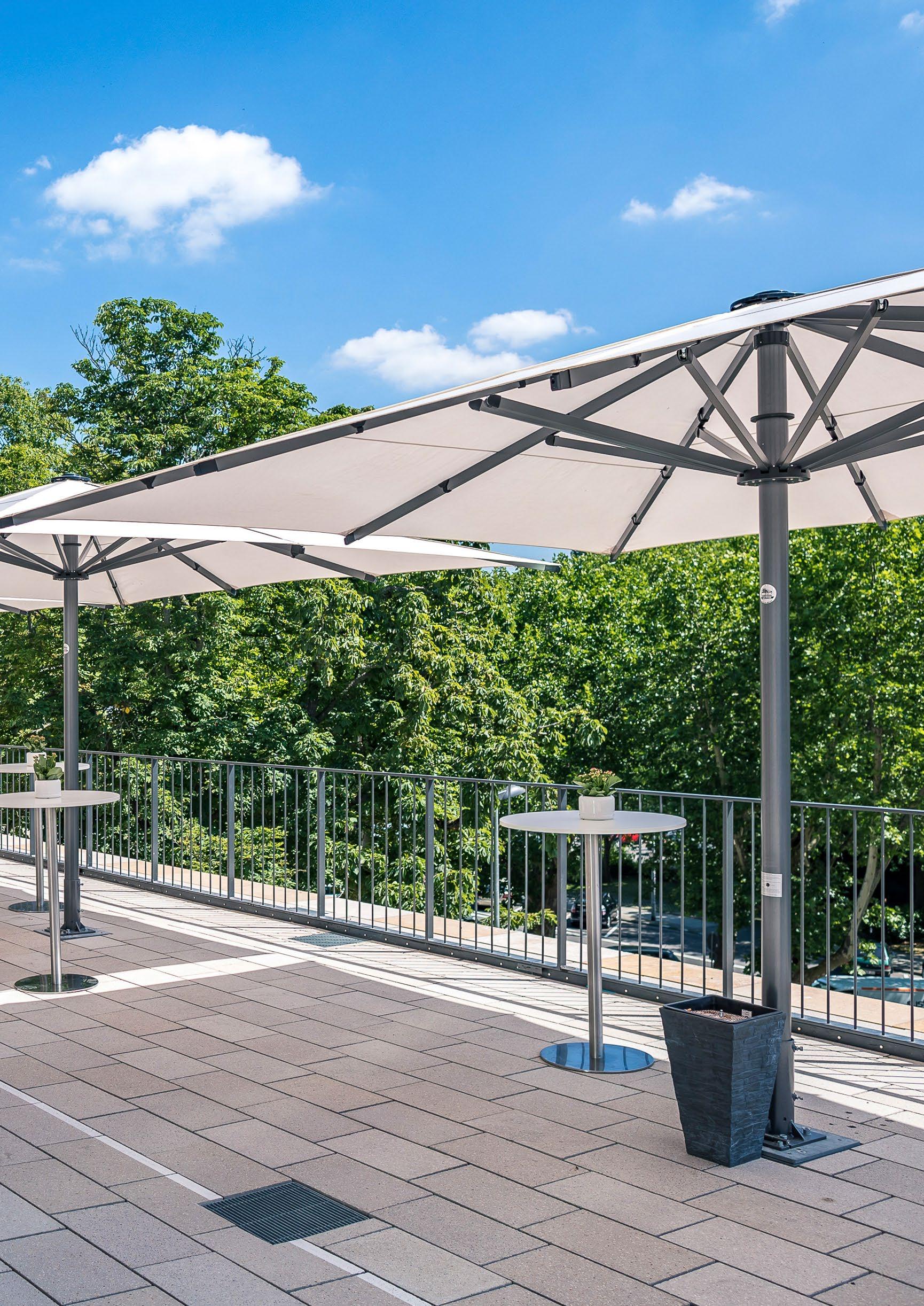 Speziell für die großflächige Außengastronomie zugeschnitten ist die Beschattung mit Schirmgruppen. Durch den stabilen Mast kann der RIALTO mit bis zu vier Schirmdächern bestückt werden. Diese Gruppierung ist ein echter Blickfang für die besondere Terrasse.