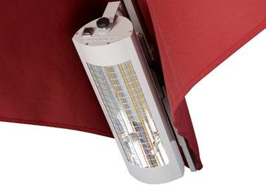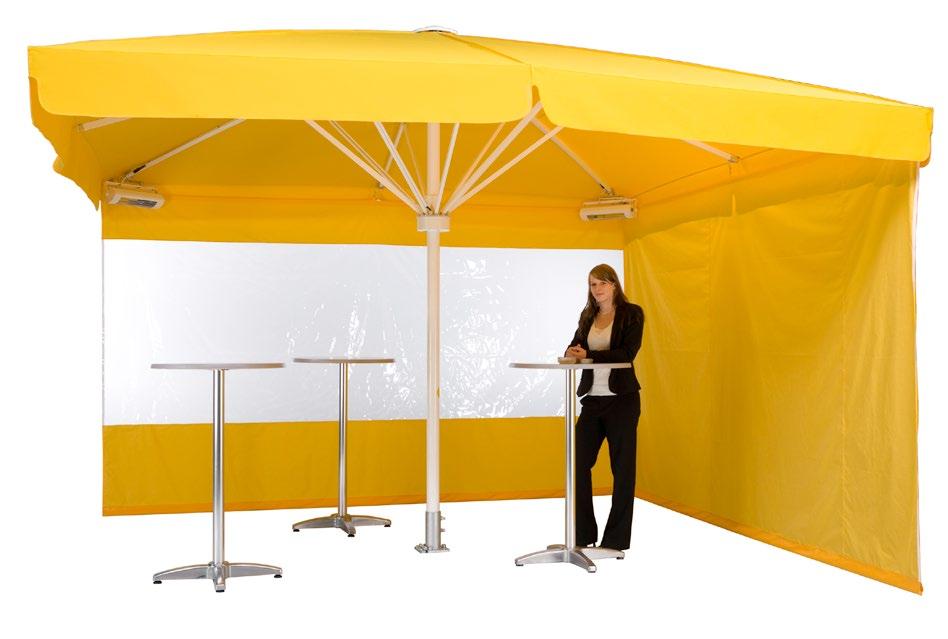 exzentrisch 3,0 × 3,0 m • 3,5 × 3,5 m • 1,5 × 3,0 m • 2,0 × 4,0 m • 2,5 × 3,5 m • 3,0 × 4,0 m • ZUSATZAUSSTATTUNG • • Gabione • Heizung • • Lautsprecher • • Licht • • • Prallschutz • • • Regenrinne • • • Rohrmotor • • Schirmdach-Stabilisator • • Seitenwände • • • Stehtisch • USB-Ladestation • • Werbedruck • • • •