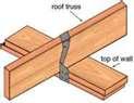 Metal hurricane straps or clips provide the proper measure of strength and safety for the roof-to-wall connection.The common practice of toenailing the trusses or rafters often is not sufficient to hold a roof in place in high winds. These clips or straps are usually very difficult to see from the attic because of insulation.