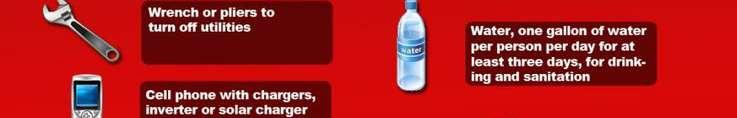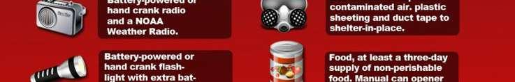 • Stock non-perishable emergency supplies and a DisasterSupply Kit.