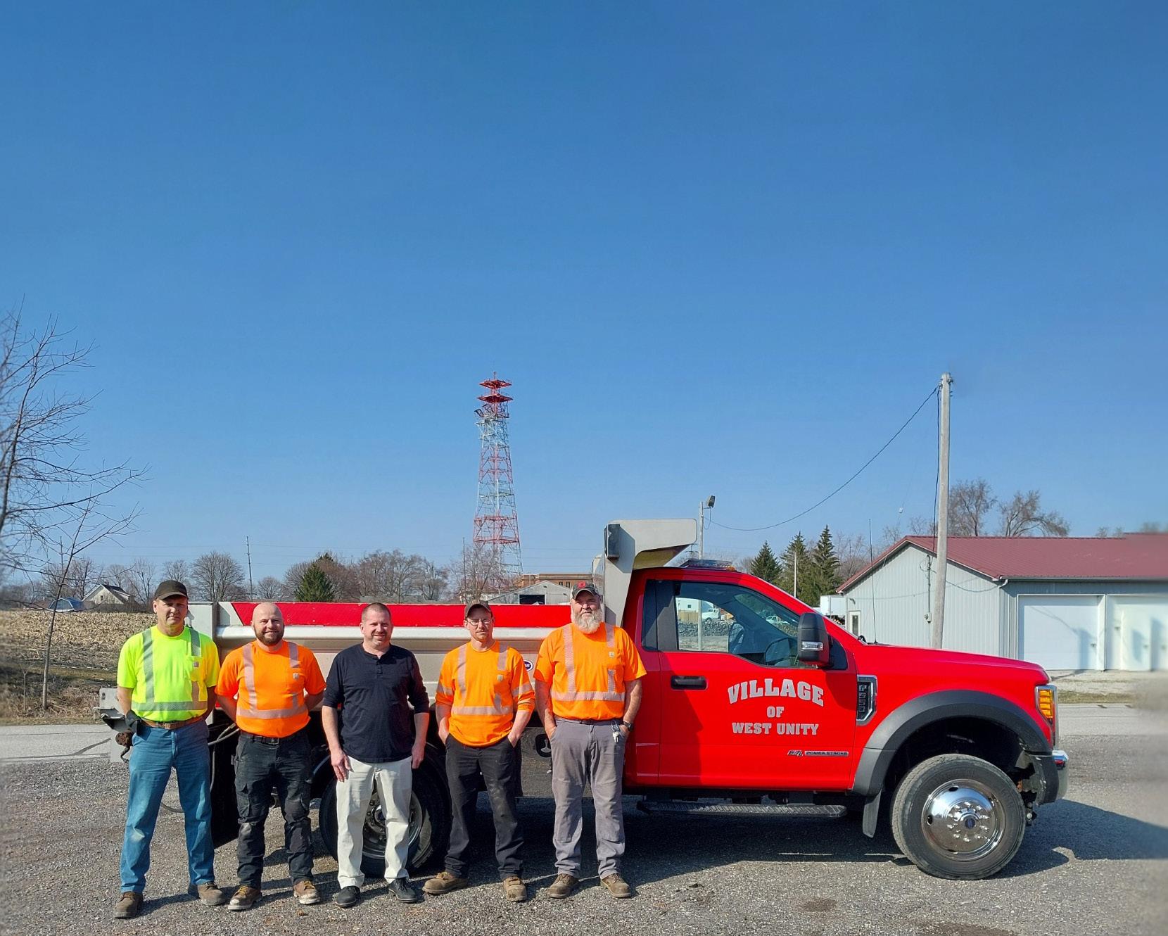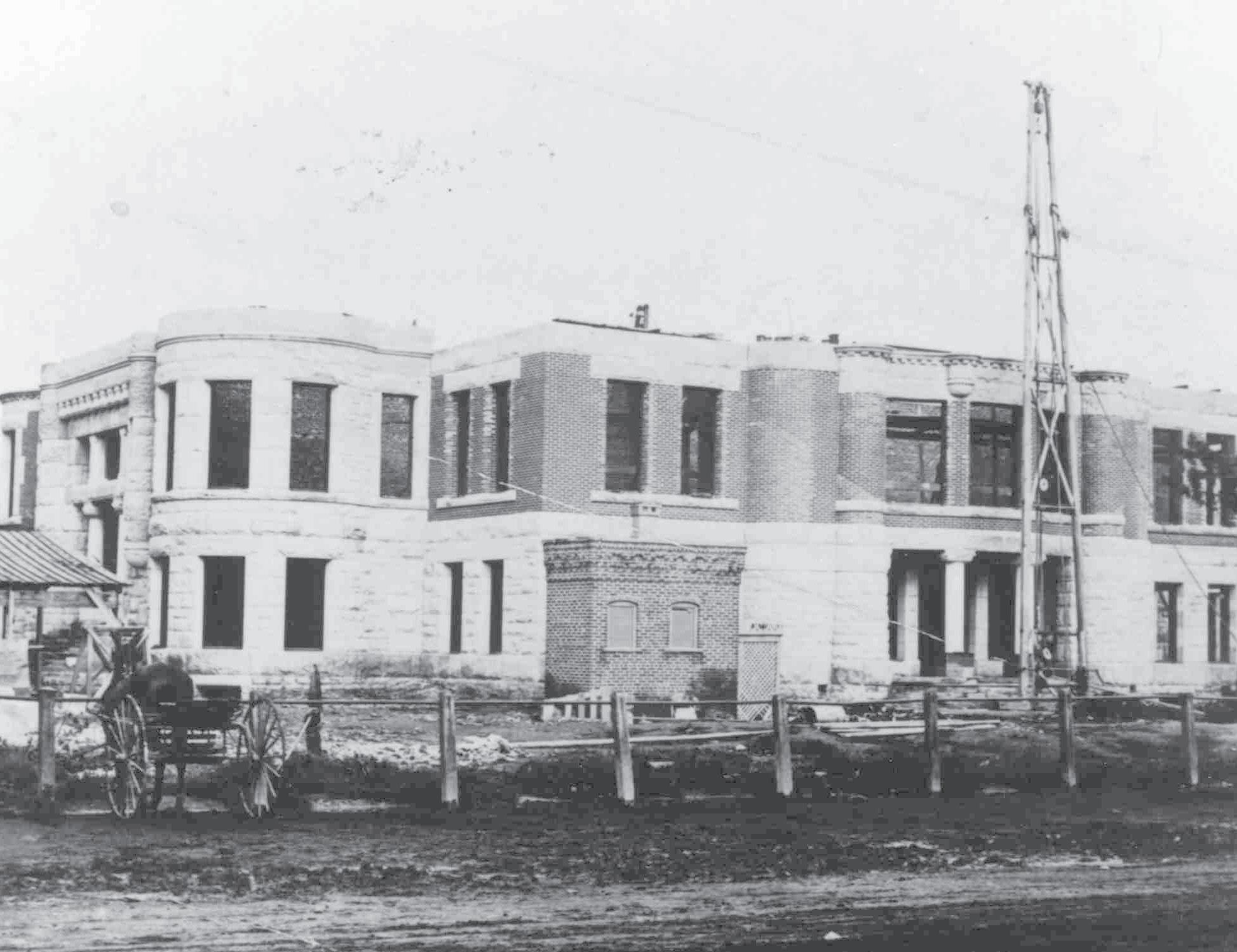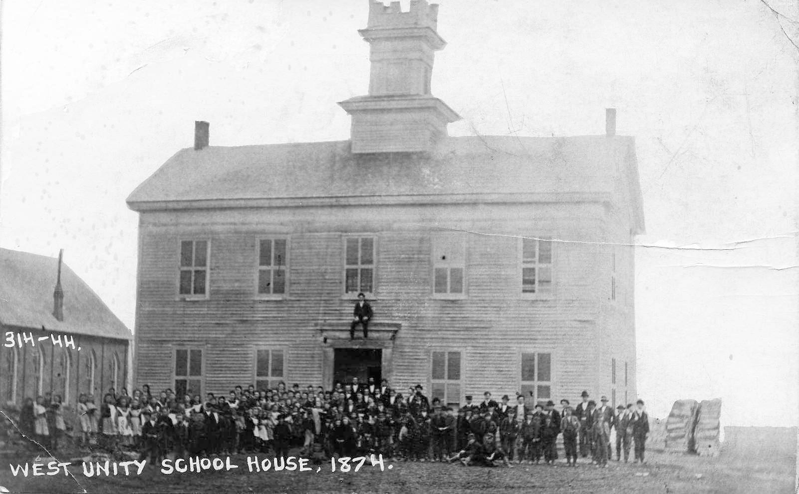 WEST UNITY TOWN HALL - West Unity’s town hall was constructed in 1894-95 at the northeast corner of Jackson and High streets. Council chambers, a community band room, fire department and village jail occupied the first floor. The second floor served as an auditorium and theatre for many years. Note the iron hitching rail in front. The building continued to serve as West Unity’s municipal headquarters following extensive alterations, including removal of its second floor until 2016.