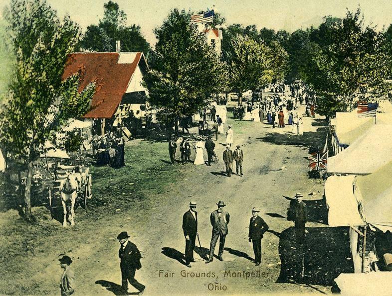 AG SOCIETY FAIR - On June 14, 1856, the Williams County Agricultural Society was organized. On October 7-8, 1856, the first Williams County Fair was held on the courthouse square in Bryan. The fair was held at various Bryan locations for 30 years. In 1885 the Montpelier Union Agriculture Company was organized and developed a fairground on Montpelier’s east side. In 1886 two local fairs were held—the Williams County Fair in Bryan and the Montpelier Fair. The Montpelier Fair prospered for 15 years, and the Williams County Fair was discontinued. By 1899 the Montpelier Fair was a bust. In 1900 the Williams County Agricultural Society purchased the Montpelier Fairground and has held the Williams County Fair there ever since.